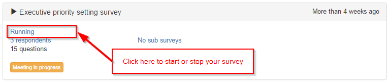 Navigate to your survey, then click on RUN MEETING