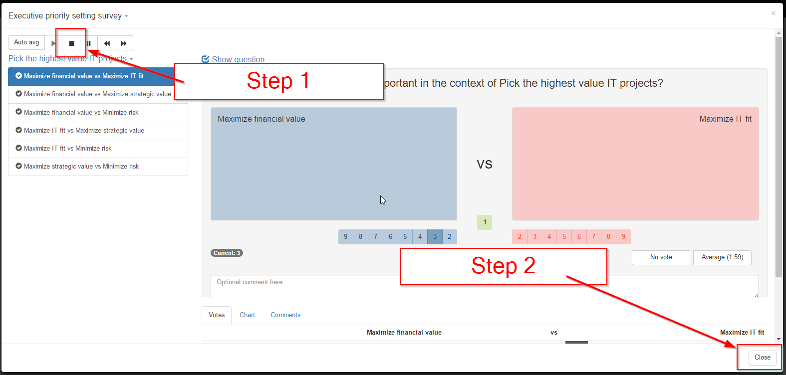 STEP 3 - Review the survey / enter "group" votes.