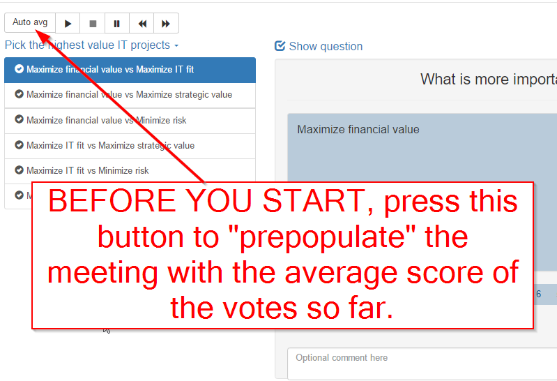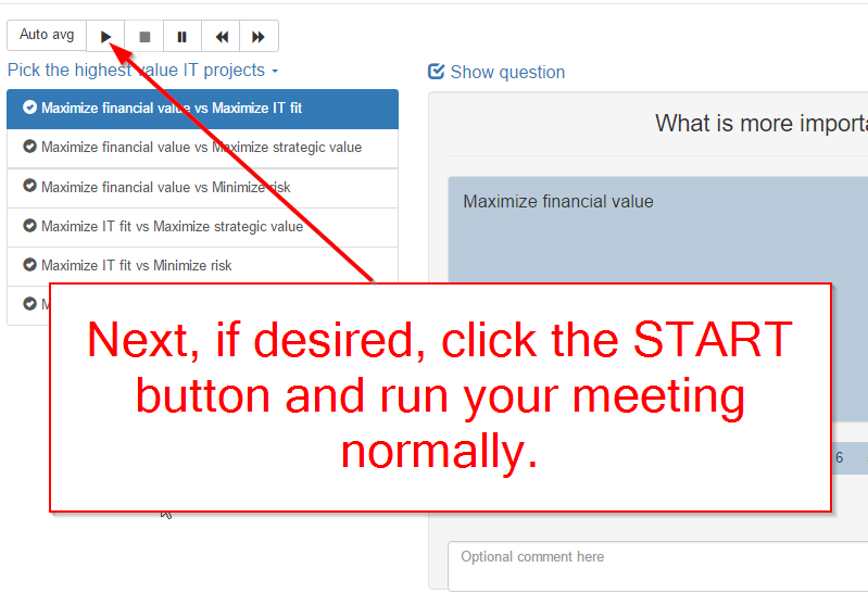 IMPORTANT: You need to complete this step even if you don't actually have a meeting. This is where you tell TransparentChoice how to aggregate scores from all your participants. It cannot calculate a result without this step being completed.